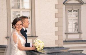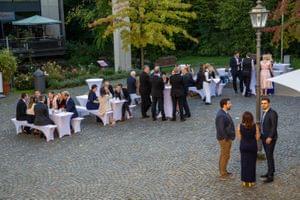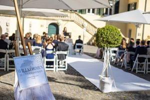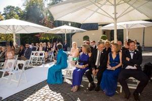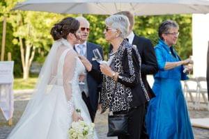 Nach der Trauung gab es einen kleinen Empfang auf dem Schlosshof. Bei wunderbarem Wetter wurde angestoßen, erzählt, gelacht und viele Fotos gemacht und anderem auch die Bilder mit den Familien.