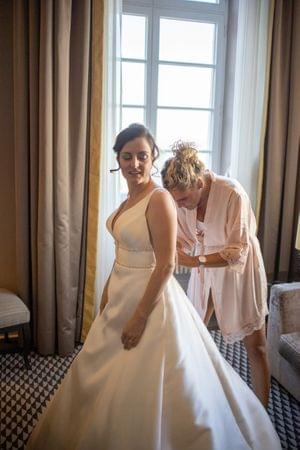Die Hochzeit sollte in Deutschland stattfinden. Familie und Trauzeugin, Menia, wurden also alle einbezogen bei der Vorbereitung zu helfen. Bei Veranstaltungsort, Kleiderwahl, Frisur und Wein wurde unterstutzt. Christopher ließ sich beim Anzugkauf von seiner Zukünftigen beraten und vom Verkäufer das Fliegebinden erklären.